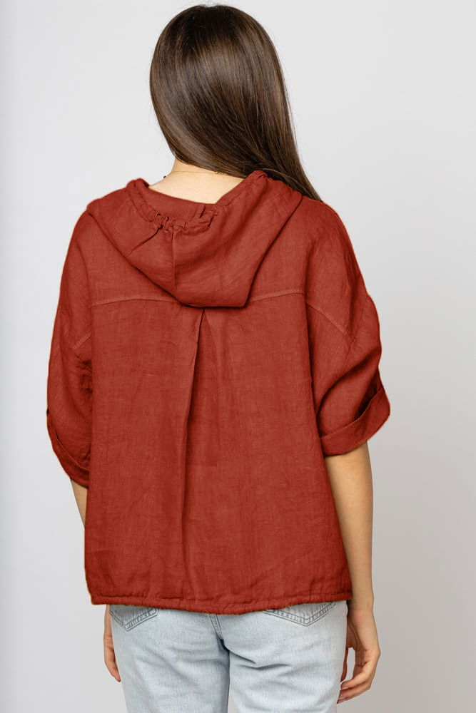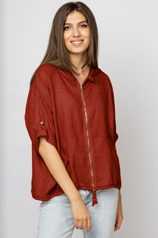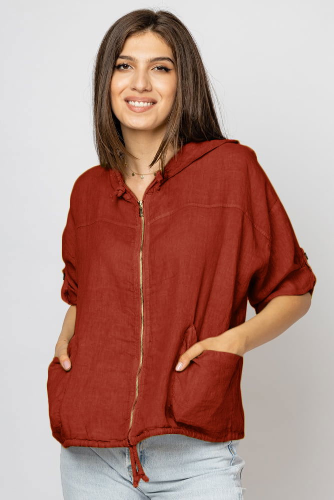 Shopika Hanorac caramiziu din in cu fermoar metalic si gluga