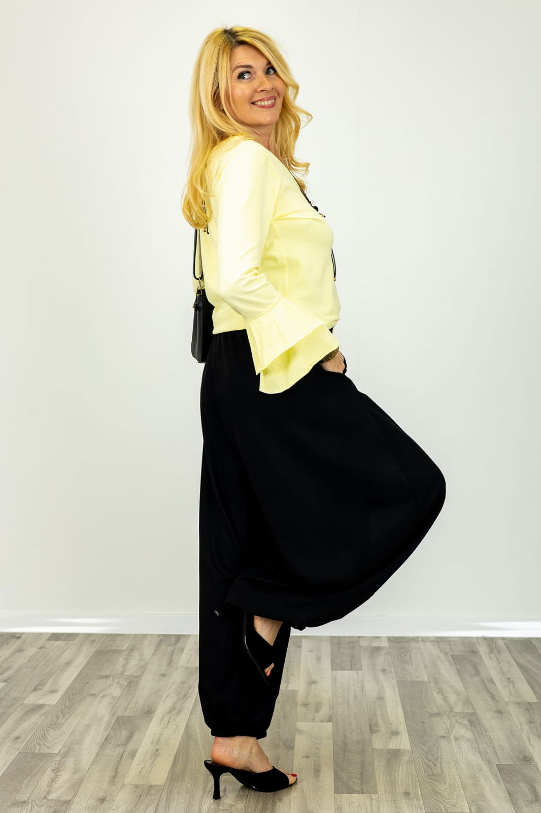 Shopika Pantaloni negri cu crioala bufanta de efect