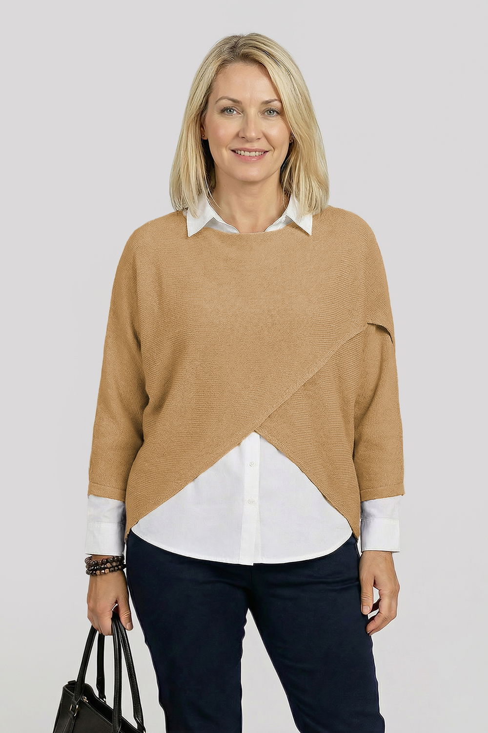 Shopika Pulover tip poncho petrecut asimetric, camel