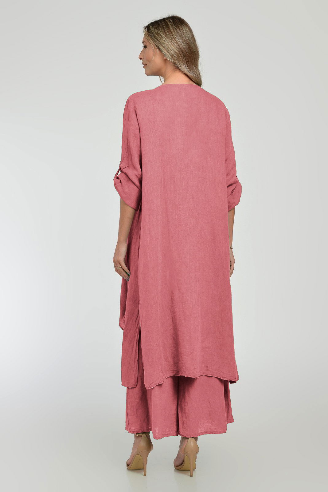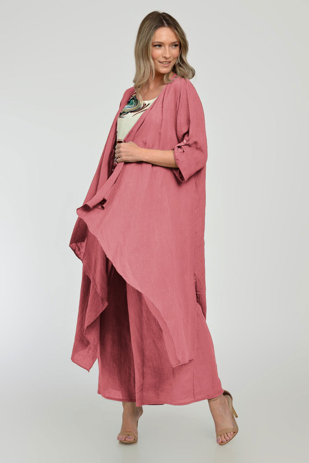 Shopika Blazer lung din in, fluid, cu revere, roz inchis