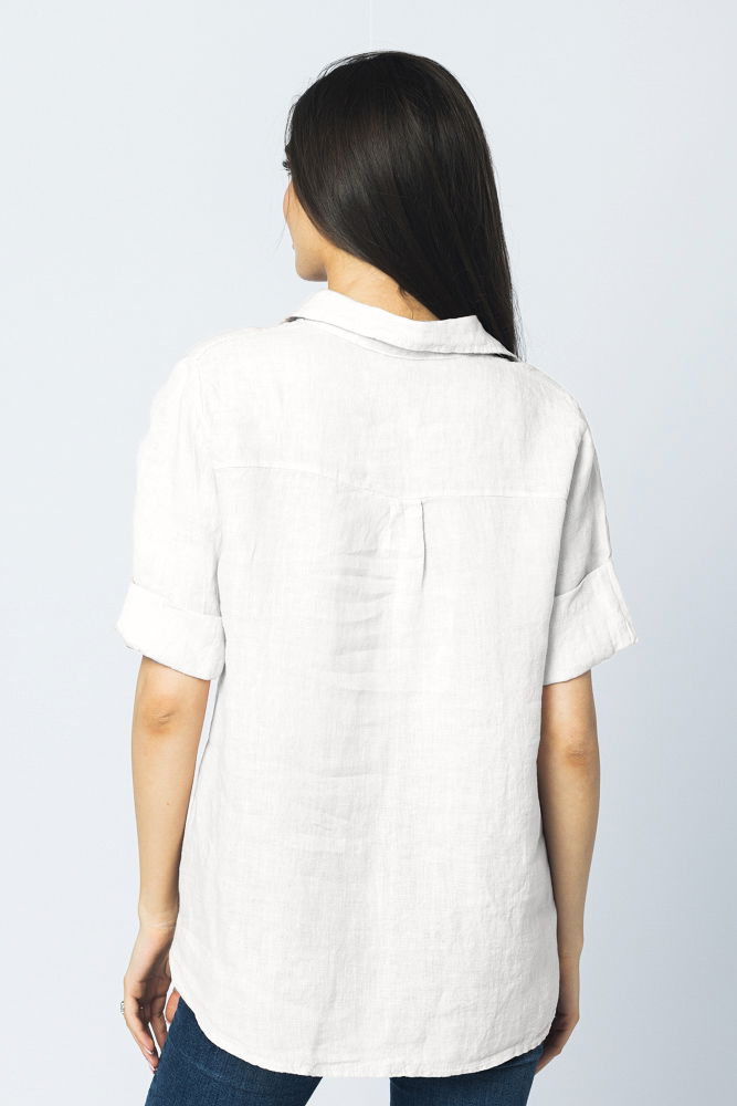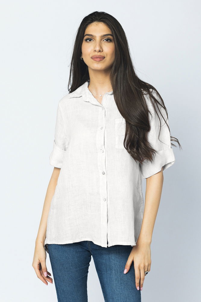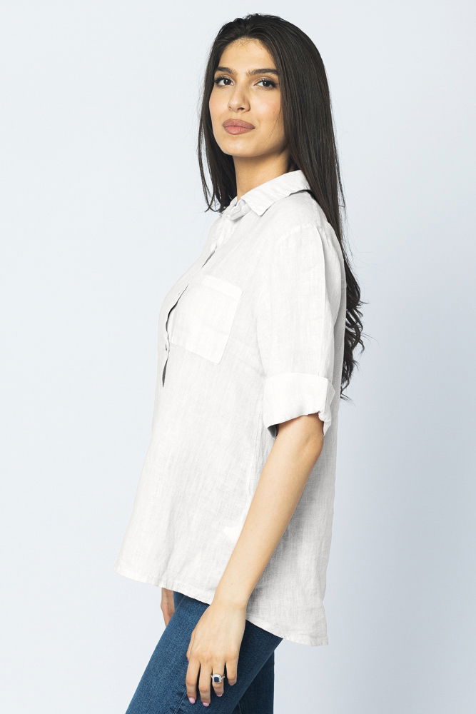 Shopika Camasa clasica din in cu buzunar pe piept si maneca 3/4, alba
