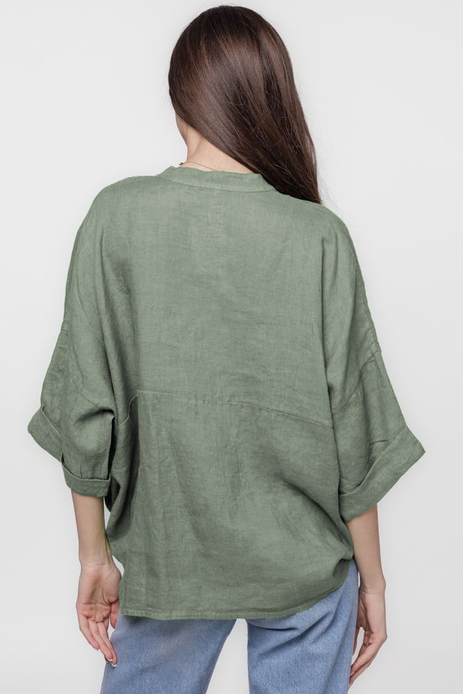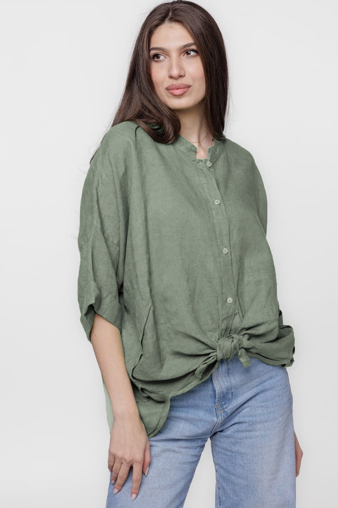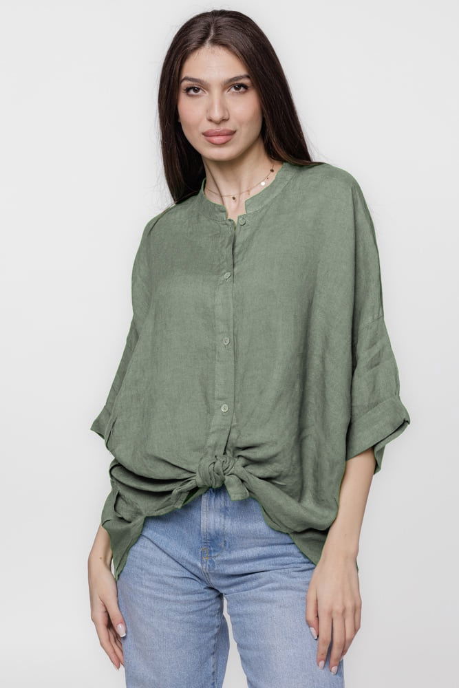 Shopika Camasa kaki, din in, cu guler tunica si nod in fata