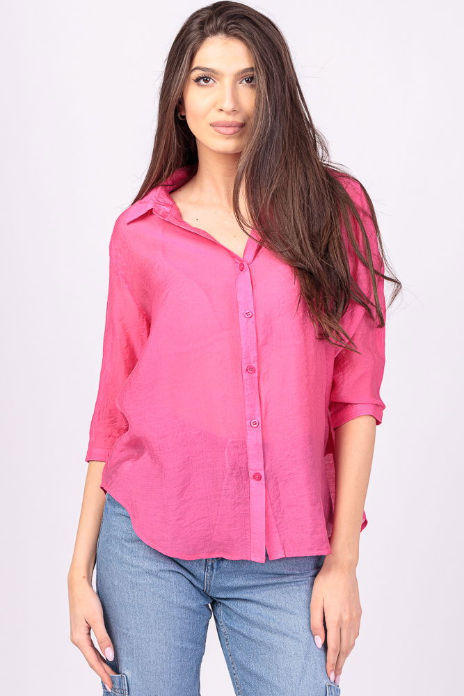 Camasa subtire, fucsia, cu guler clasic, maneca lunga si buzunar pe piept