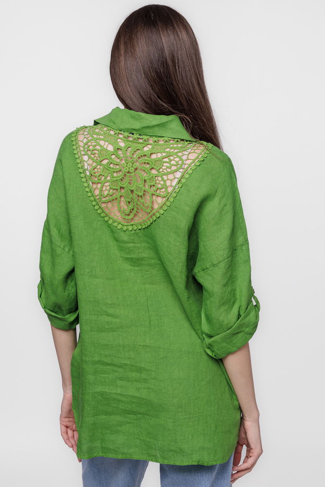 Shopika Camasa verde olive lejera, din in cu dantela pe spate