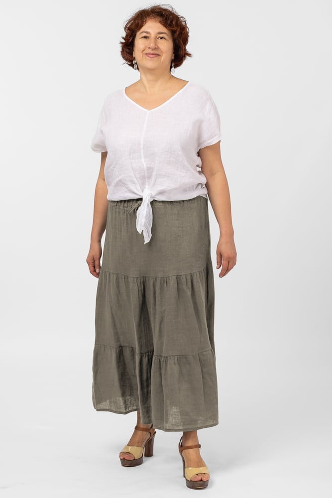 Fusta casual din in este perfecta pentru a obtine tinute trendy, simple si de efect.