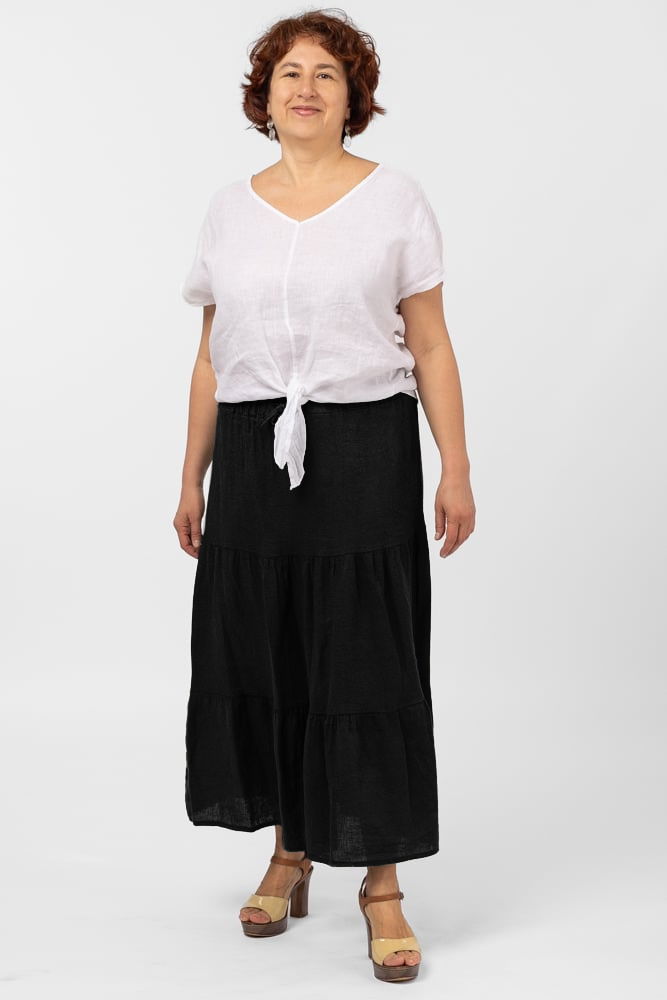 Fusta casual din in este perfecta pentru a obtine tinute trendy, simple si de efect.