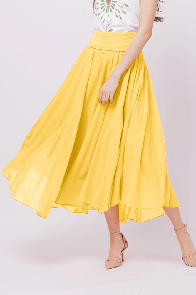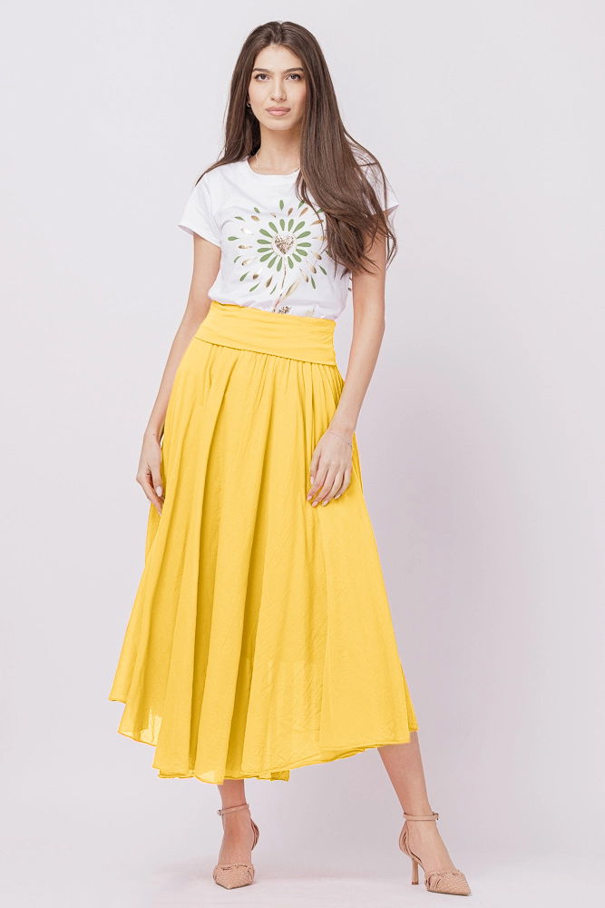 Shopika Fusta lunga galbena, ampla, clos, din batist de bumbac