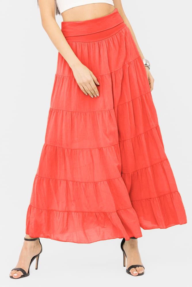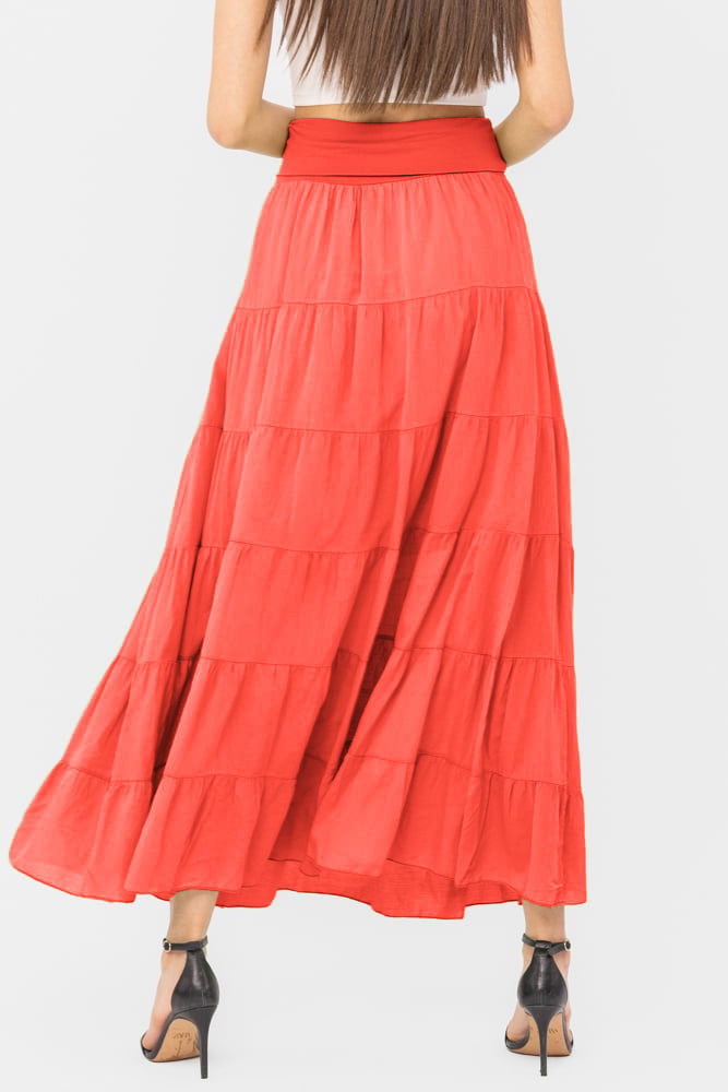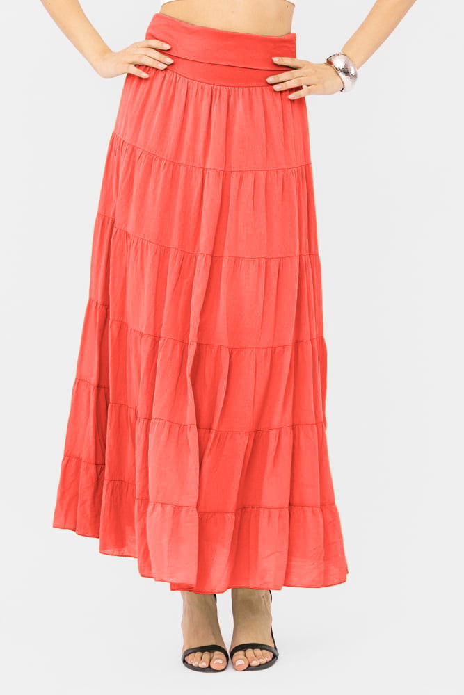 Shopika Fusta maxi, ampla, cu volane, din batist de bumbac, corai