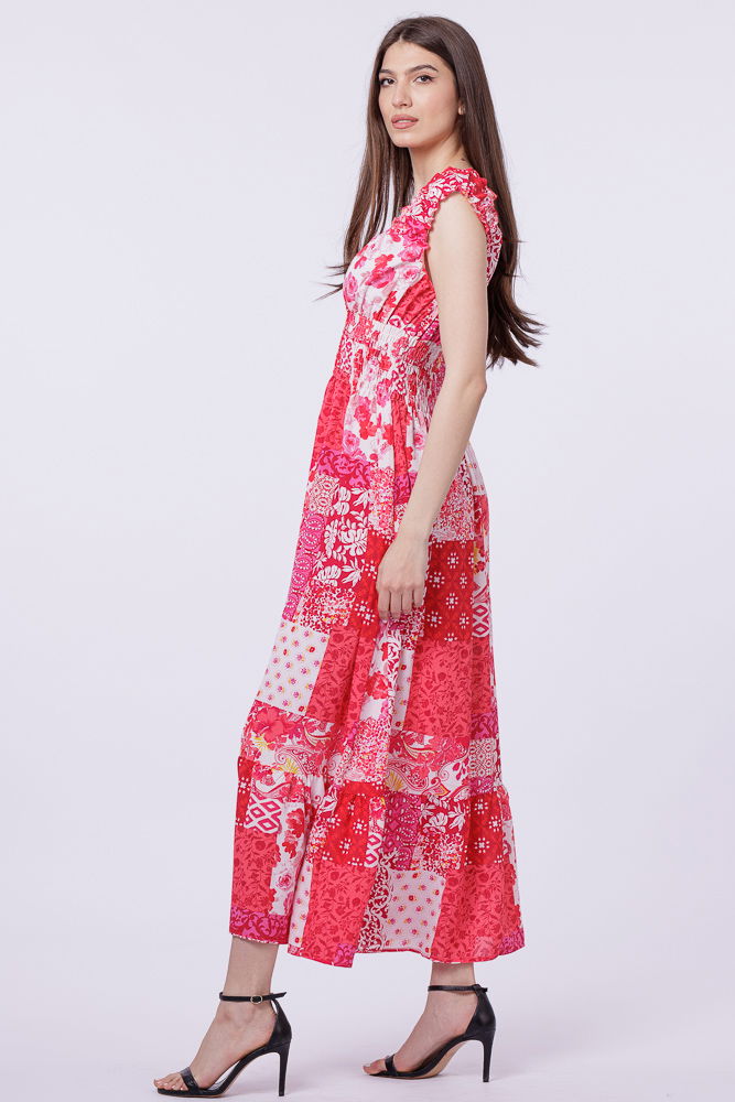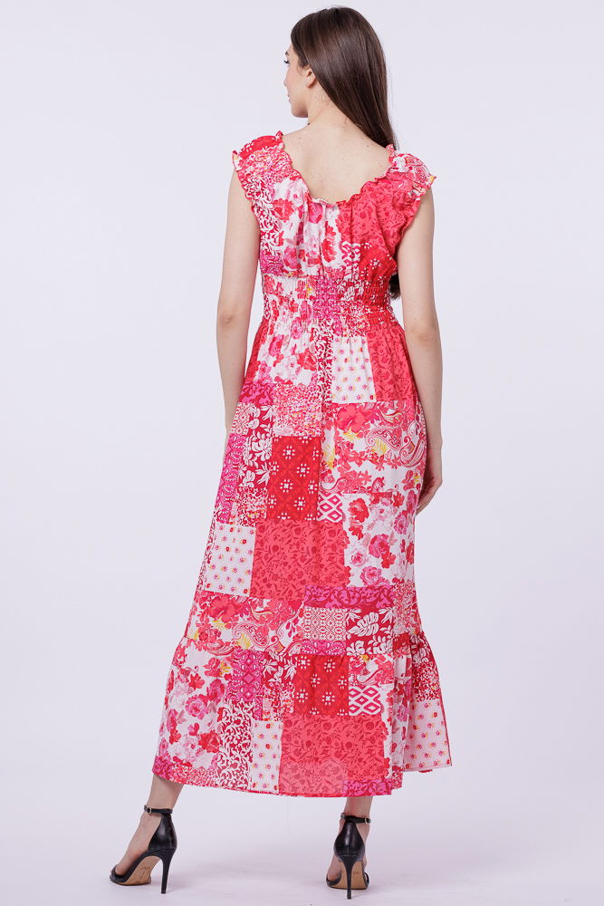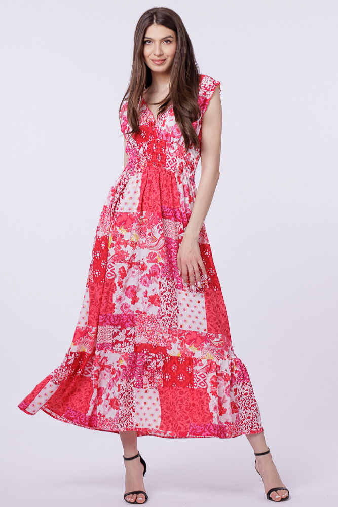 Shopika Rochie cu talia evidentiata si bust petrecut, imprimeu floral rosu