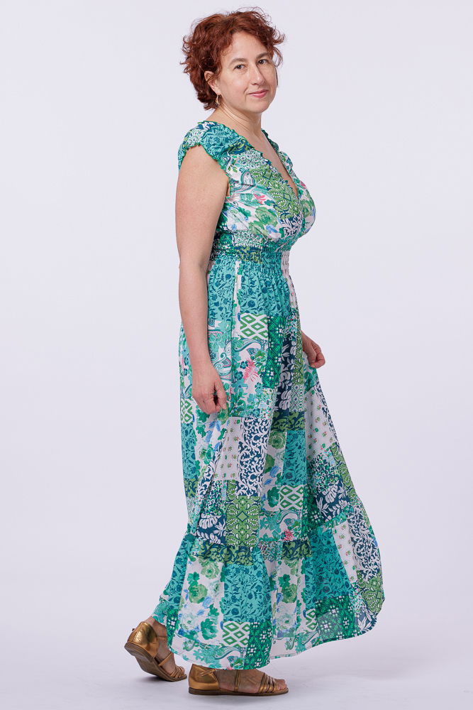 O rochiță foarte frumoasa, reusita, detalii atent lucrate, de exemplu zona de subbrat este croita si fimisata astfel incat nu se vede subtioara sau sutienul.