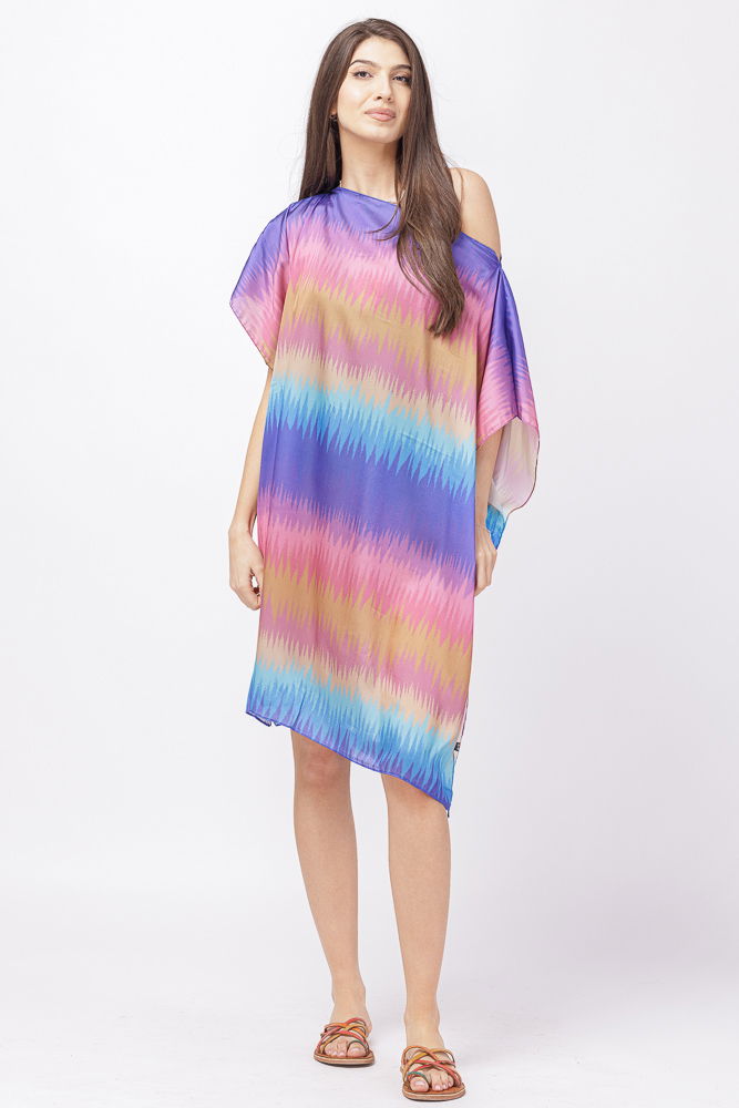 Shopika Rochie de plaja tip poncho din matase cu imprimeu curcubeu albastrui