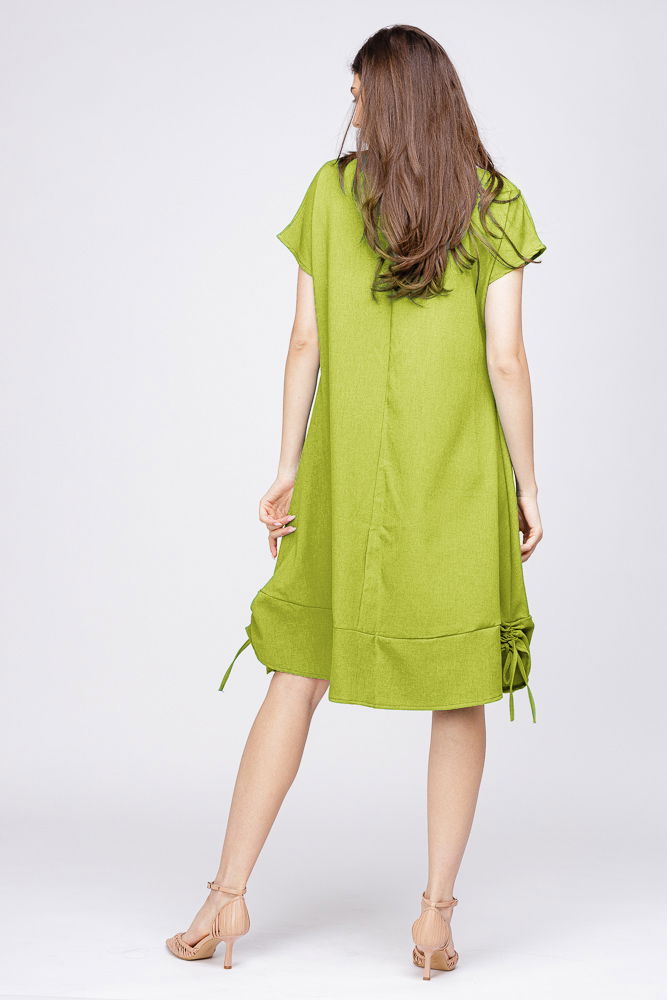 Rochie uni `A line` din in mercerizat cu sireturi laterale, verde lime