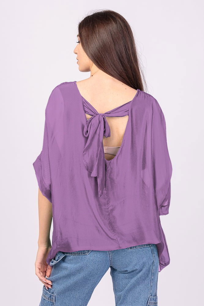 Shopika Bluza din matase si vascoza cu funda pe spate, mov deschis