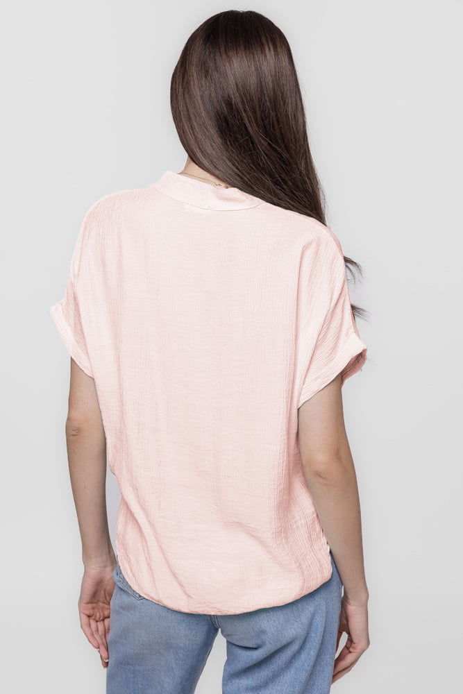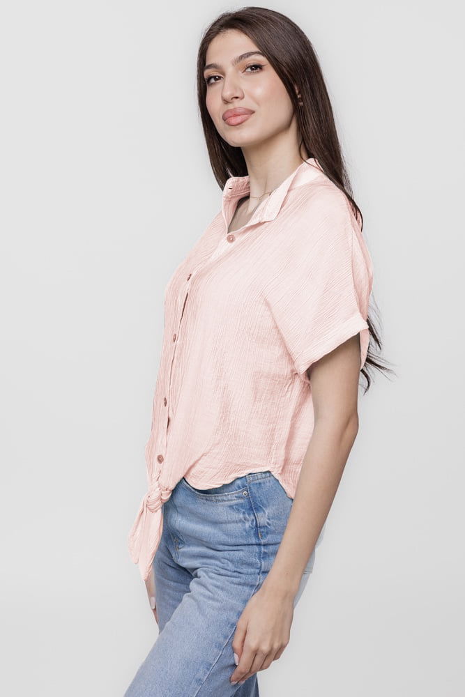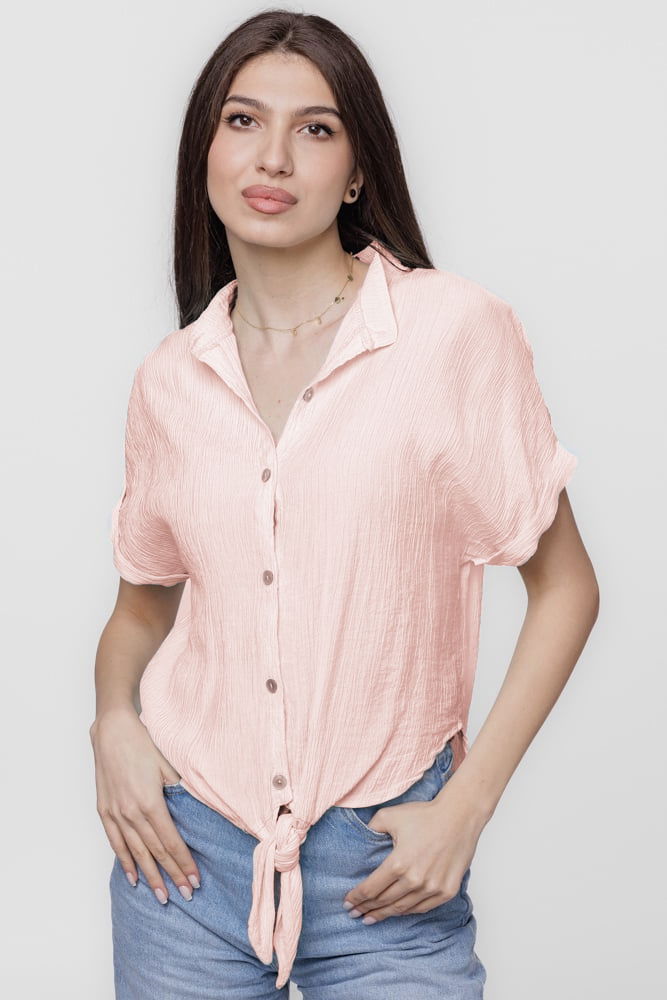 Shopika Camasa roz pal din vascoza creponata, cu guler tunica si nod in fata