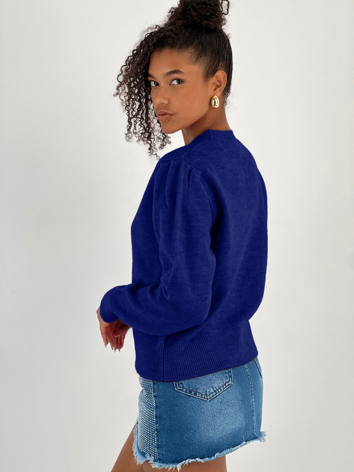 • Are maneci lungi bufante cu mansete mai stranse, si decolteu in V
