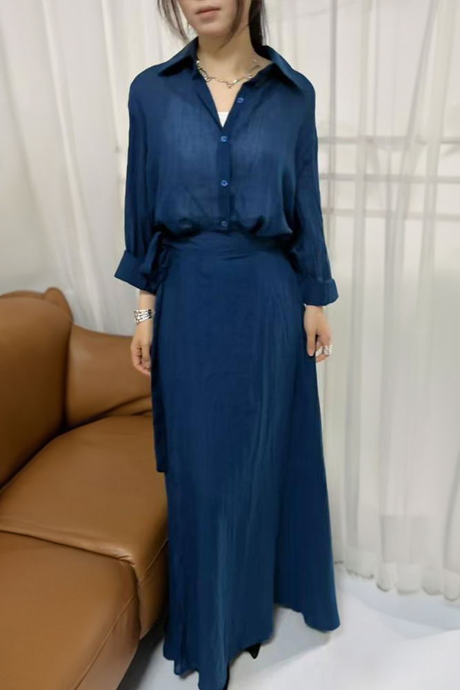 Shopika Compleu din vascoza si bumbac, creponate cu camasa si fusta petrecuta, turcoaz inchis