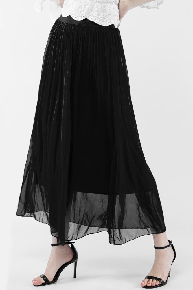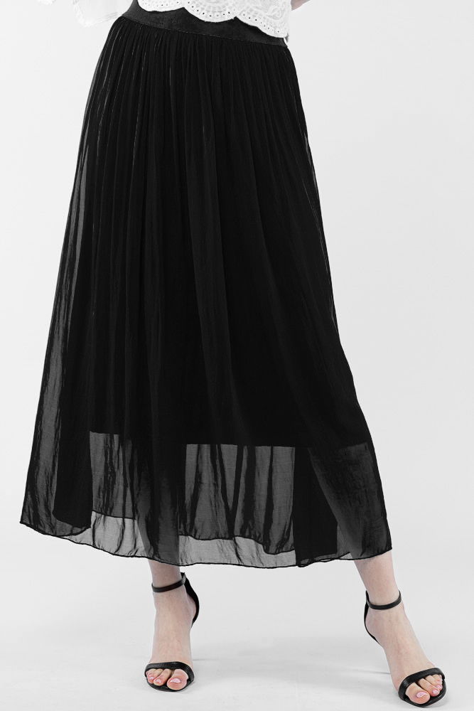 Fusta lunga din matase si vascoza, cu banda elastica, neagra