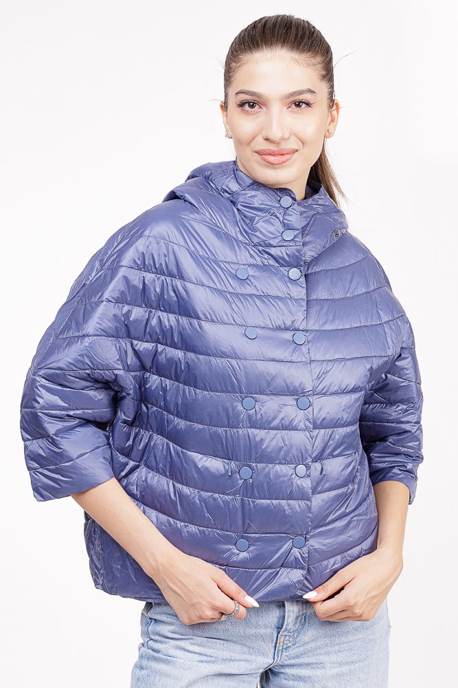 Geaca Monte Cervino oversize, albastru petrol, cu gluga si maneci 3/4