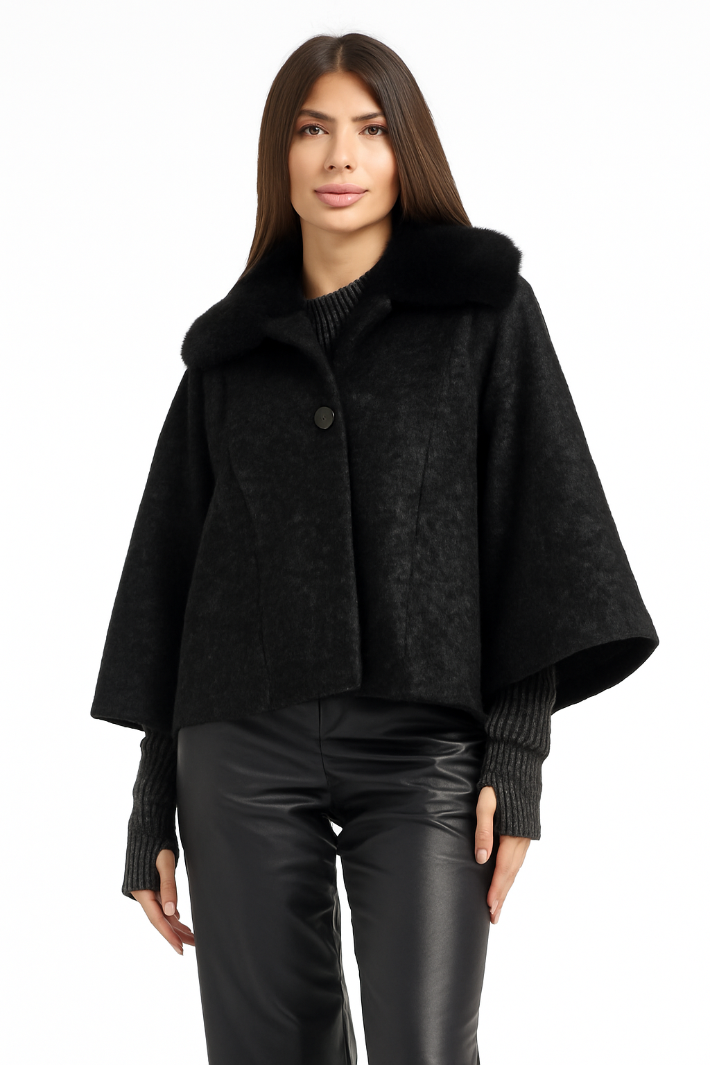 Un palton scurt cu blăniță, ideal pentru garderoba de toamnă-iarnă a oricărei femei moderne.