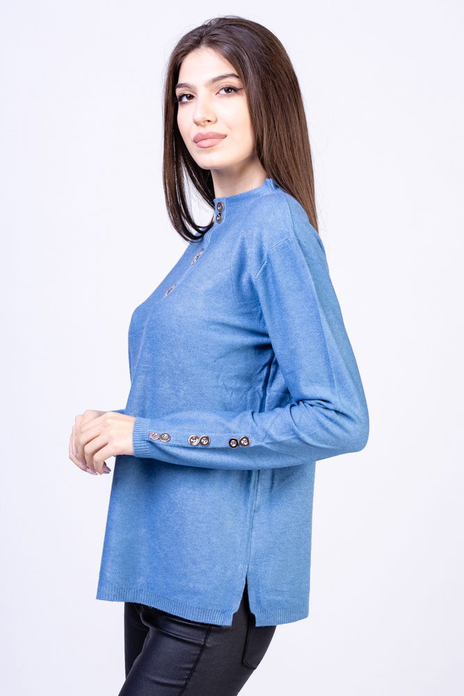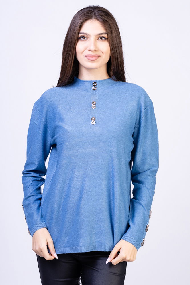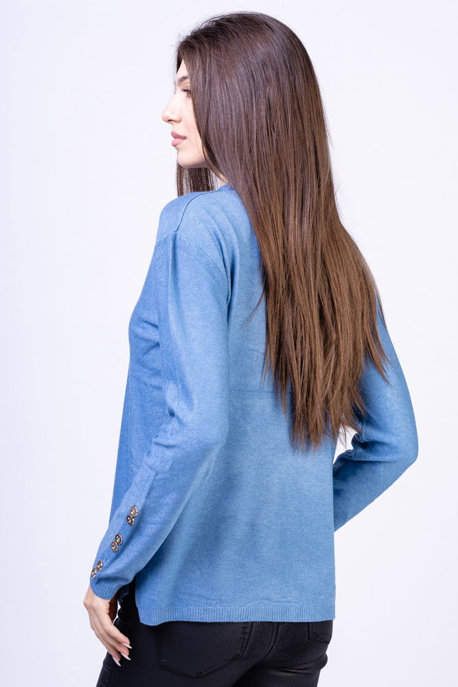 Puloverul este dintr-un tricotaj fin si placut la atingere, potrivit pentru a fi purtat in sezonul rece.