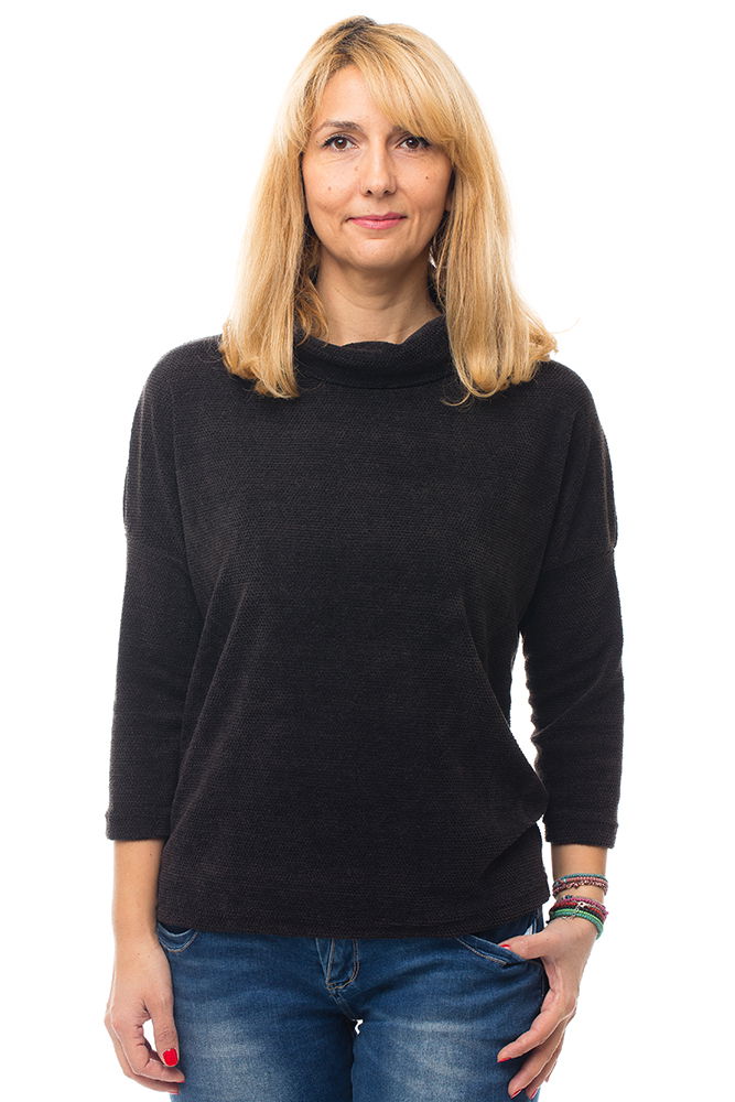 • Puloverul are maneci 3/4 si guler inalt