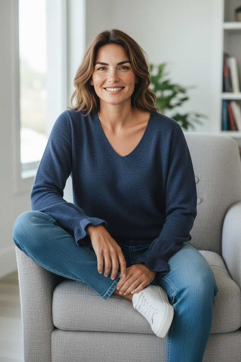 Un pulover versatil care lumineaza orice zi. Nuanta aduce prospetime si energie, in timp ce tricotul moale si croiala lejera il transforma intr-o piesa pe care o vei purta iar si iar. Decolteul in V alungeste frumos linia gatului, iar forma simpla si moderna il face usor de integrat in tinute minimaliste sau smart-casual. Un pulover cald, feminin si relaxat – exact genul de piesa care te face sa te simti bine fara efort.