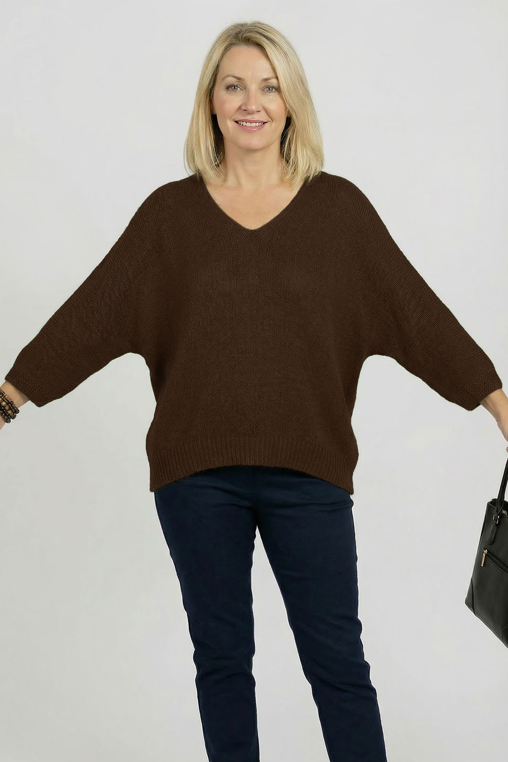 Un pulover care arata ca o imbratisare calda. Textura pufoasa si croiala lejera il transforma intr-o piesa esentiala pentru zilele racoroase, iar decolteul in V aduce acea nota feminina si relaxata care ramane mereu in tendinte. Este suficient de moale pentru confortul de acasa, dar suficient de chic pentru iesiri in oras sau tinute smart-casual.