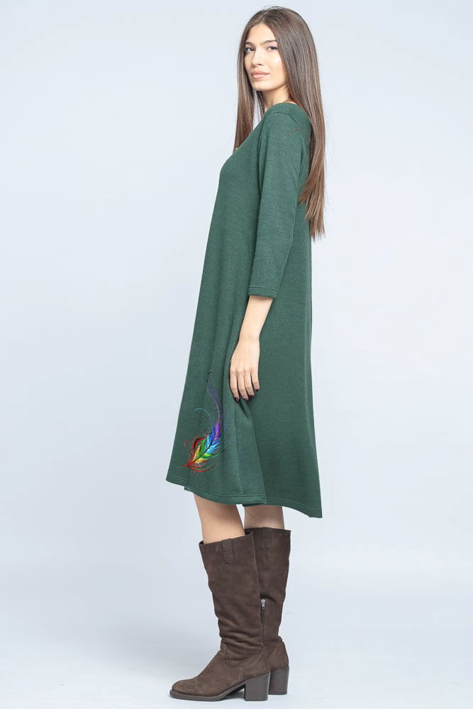 Pierino Rochie `A line` midi, din jerseu moale cu imprimeu lateral pana, verde inchis