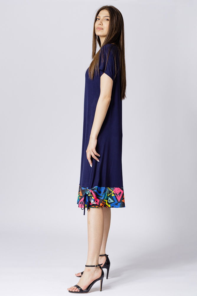 Pierino Rochie bleumarin din vascoza cu volan imprimeu geometric si sireturi laterale