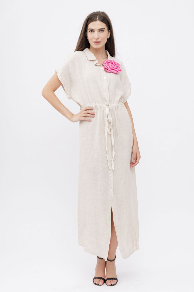 Shopika Rochie camasa, din in, cu snur in talie, bej