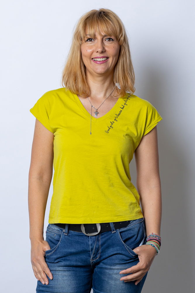 Alege sa porti acest tricou cu imprimeu vesel pentru a compune tinute chic in care te vei simti confortabil si vei arata minunat.