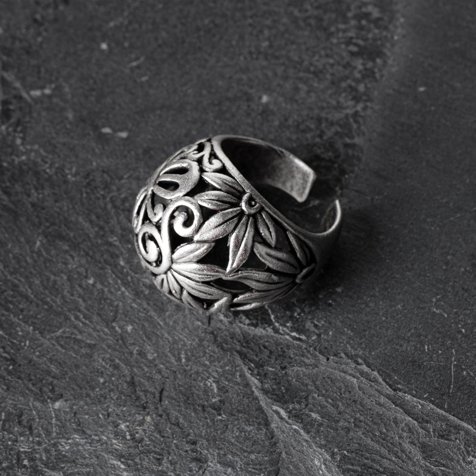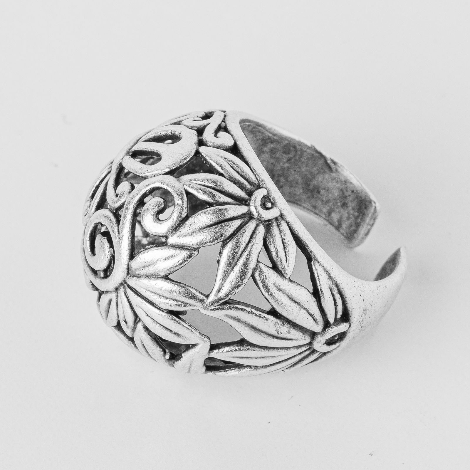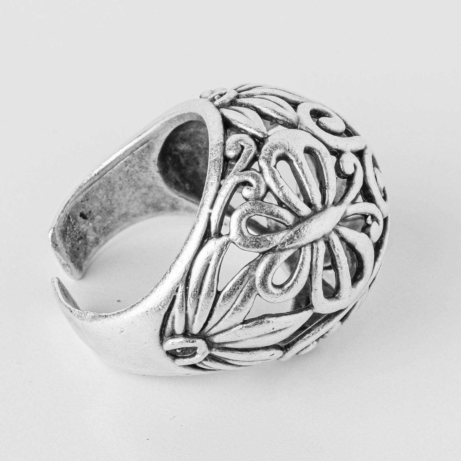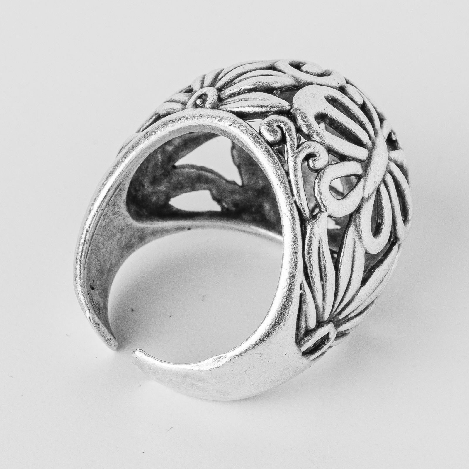Shopika Inel reglabil bombat, din zamac cu detaliu fluture si frunza