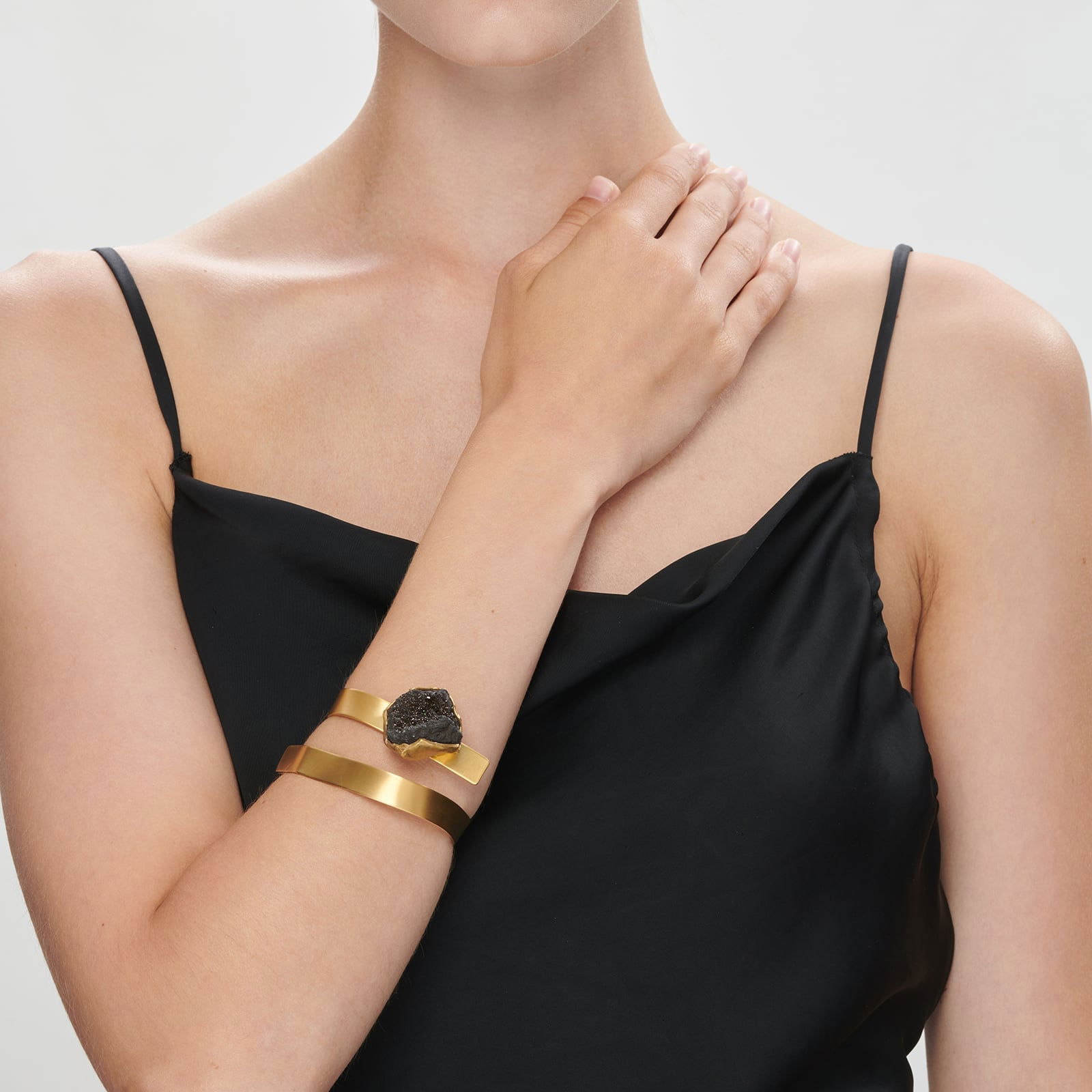 Katerina Vassou Bratara rigida Chantal cu piatra neregulata de agata, din alama placata cu aur de 24k