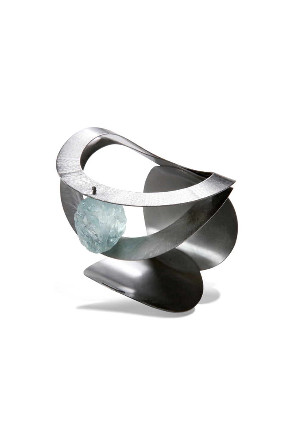 Katerina Vassou Bratara rigida Oyster cu cerc dublu si piatra naturala de fluorina, din alama placata cu gun metal