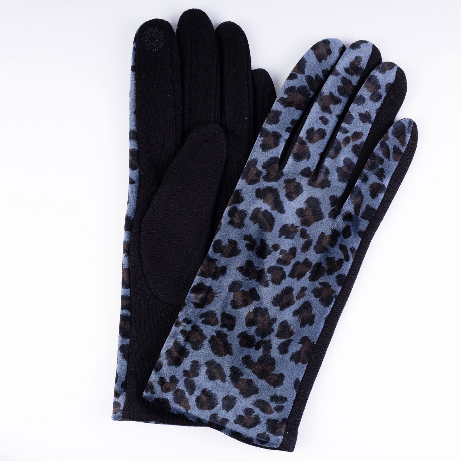Shopika Manusi bleumarin textil cu imitatie animal print cu aspect catifelat