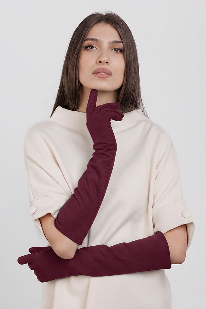 Shopika Manusi dama foarte lungi si simple din material textil catifelat bordo