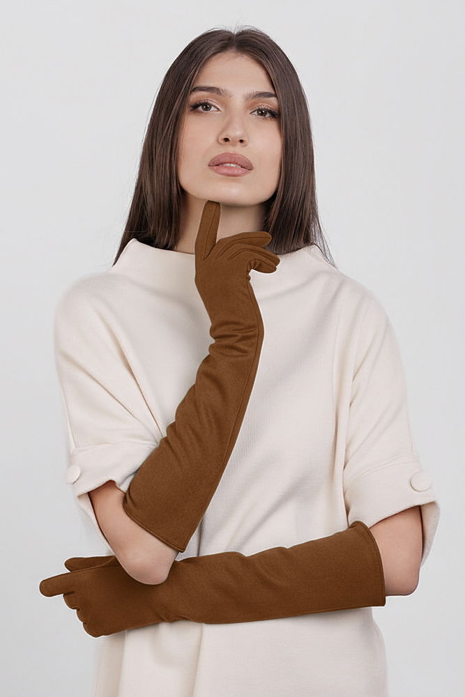 Shopika Manusi dama foarte lungi si simple din material textil catifelat maro ciocolatiu