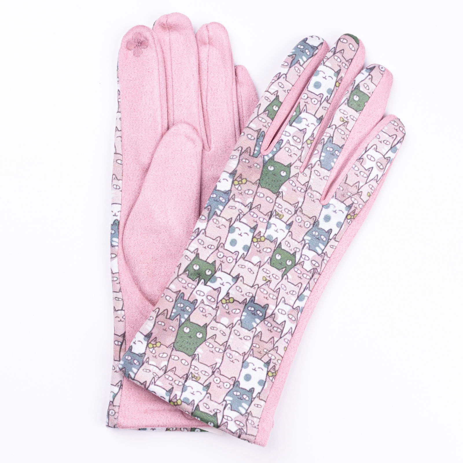 Shopika Manusi dama imprimeu pisici cu ochi mari pe fond roz prafuit, material catifelat