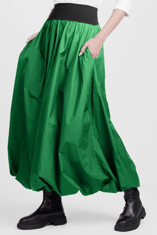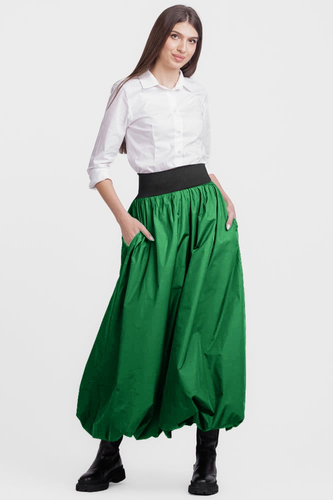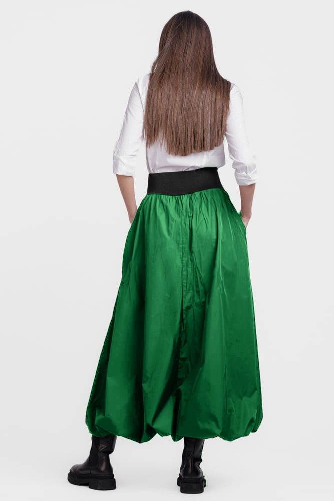 Shopika Romania Fusta lunga gogosar, din tafta verde sifonata