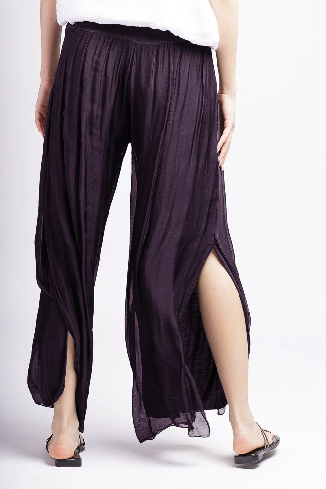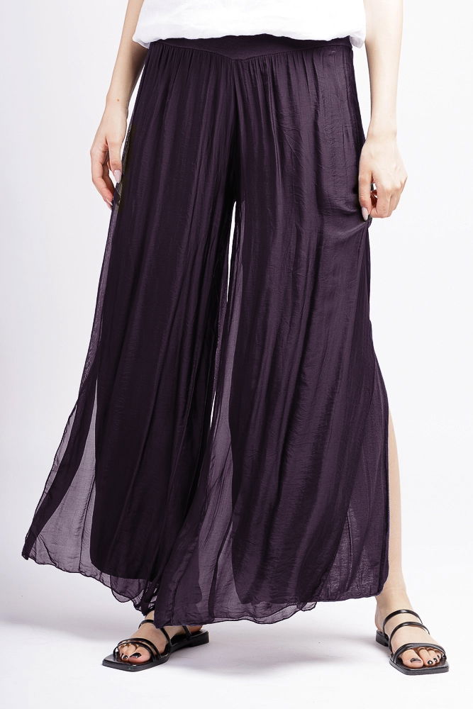 Shopika Pantaloni mov inchis din matase si vascoza, cu crapaturi laterale