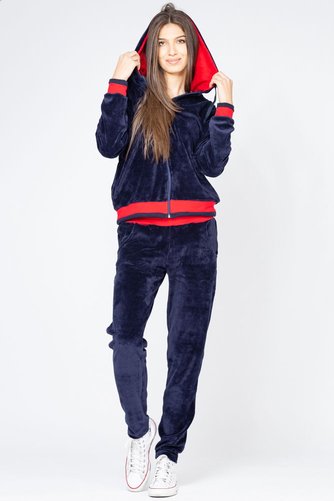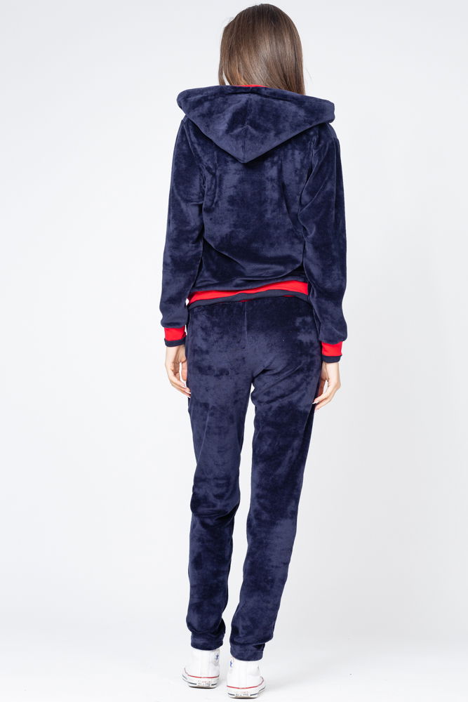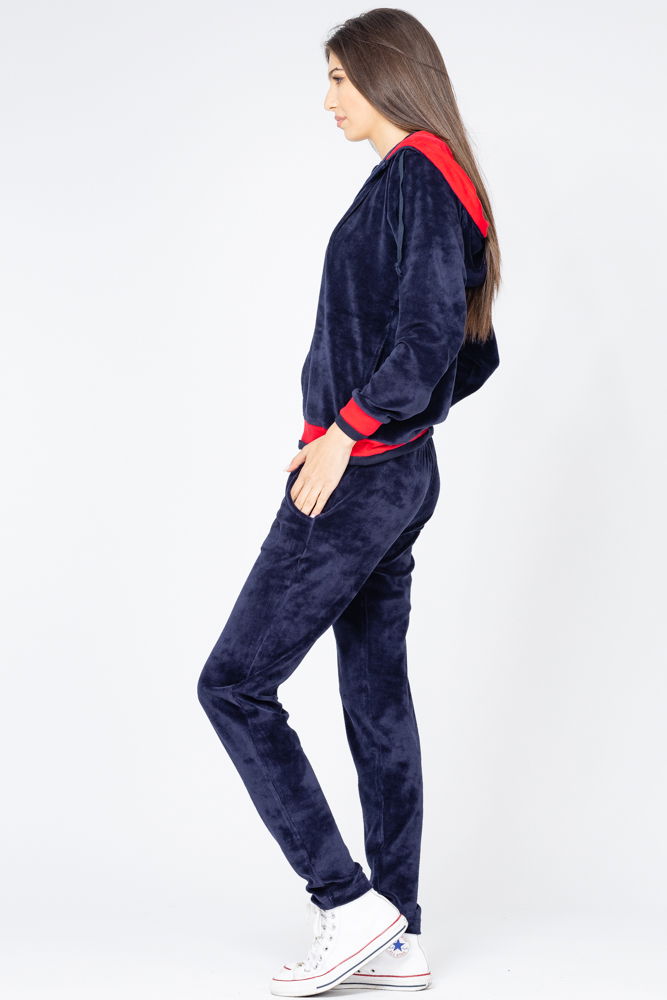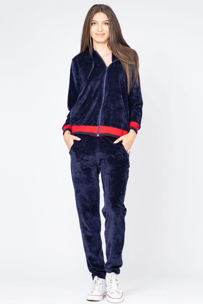 Pierino Trening dama doua piese catifea de bumbac bleumarin cu banda rosie
