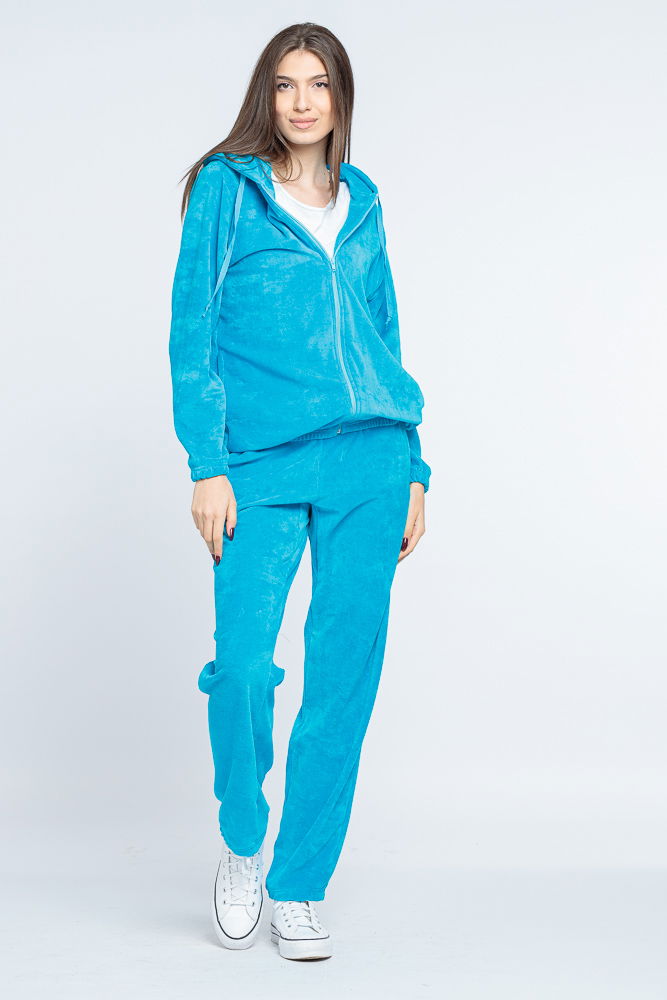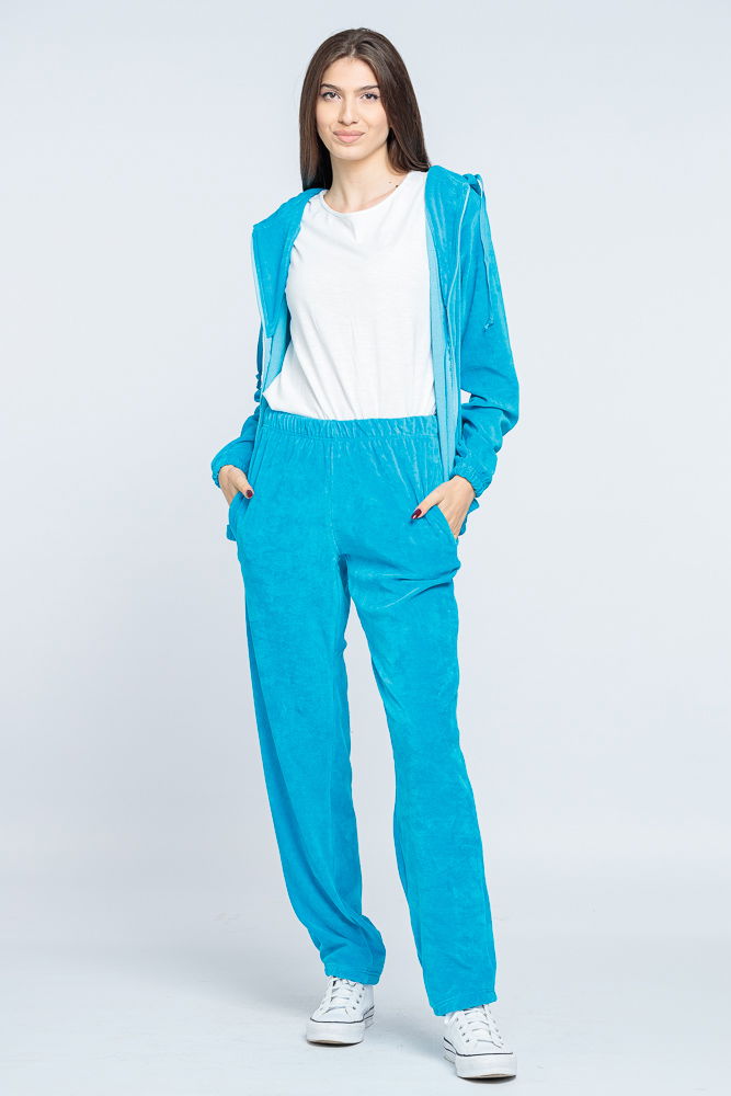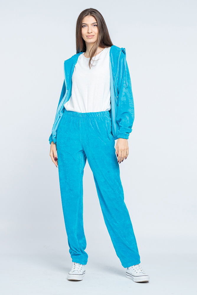 L: bluza: umeri 43 cm, bust 108 cm, lungime 65 cm, pantaloni: talie 82 cm, sold 114 cm, lungime 102 cm