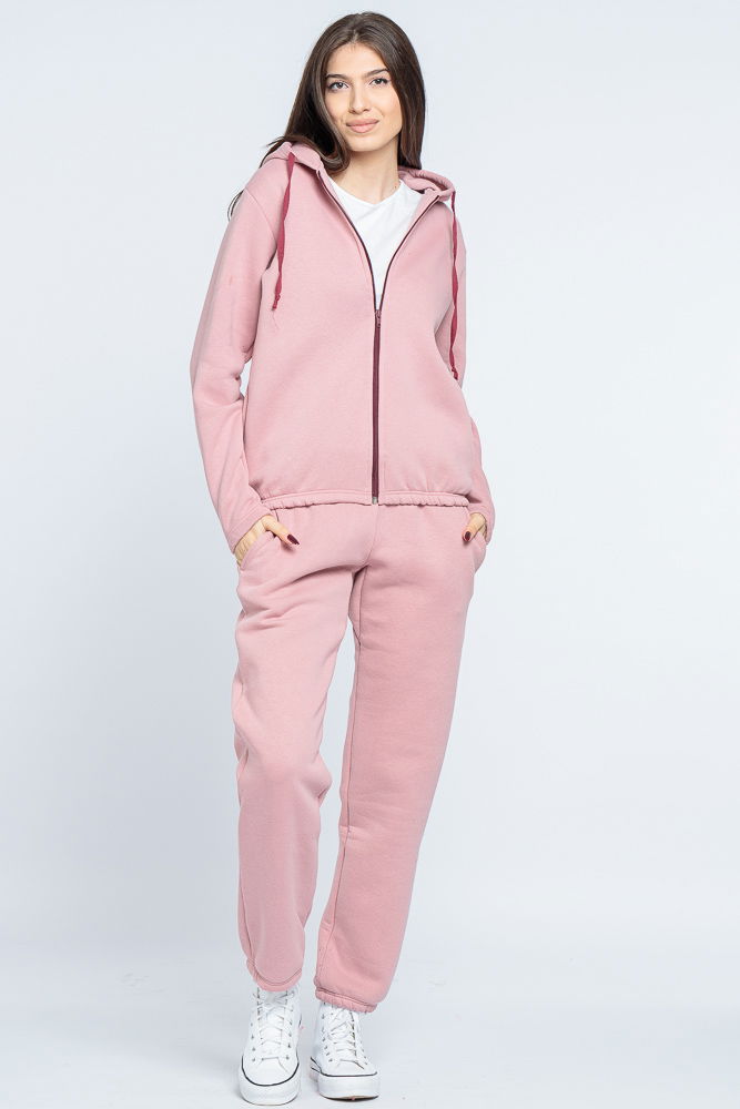 Pierino Trening dama doua piese din jerseu de bumbac vatuit, roz prafuit