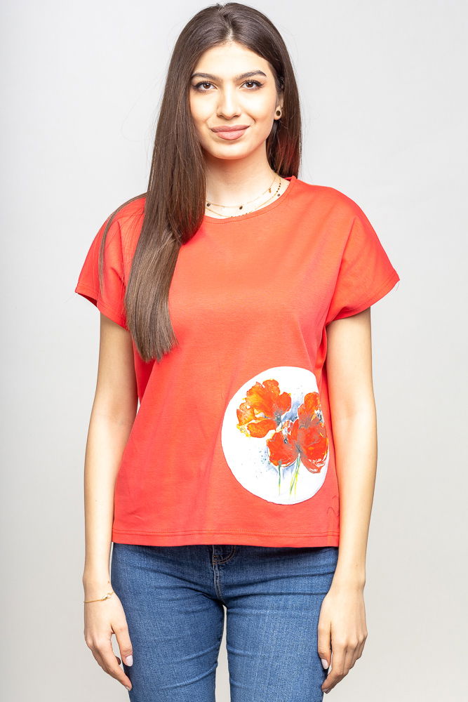Pierino Tricou corai cu panou lateral maci rosii picturali