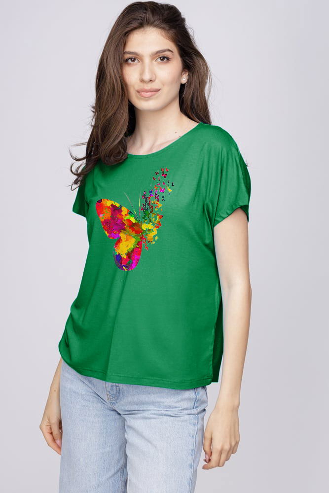 Pierino Tricou din vascoza cu imprimeu fluture, verde