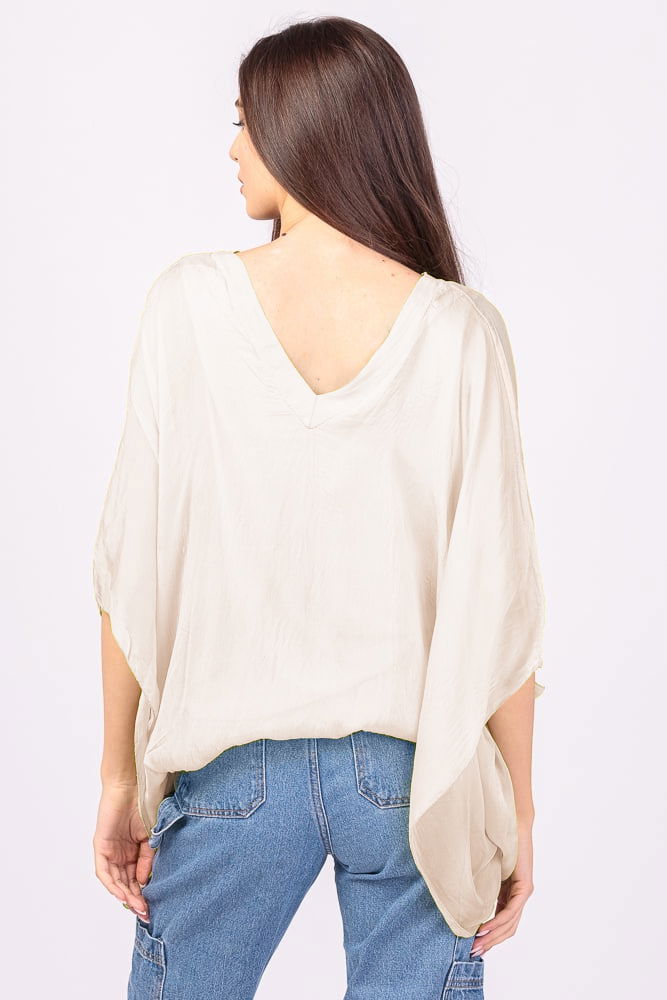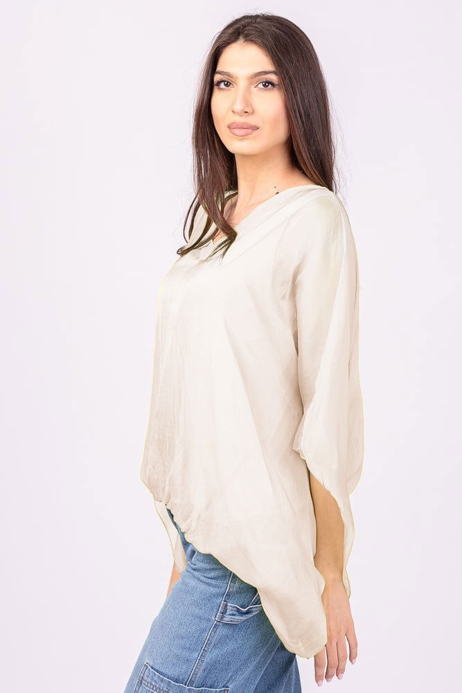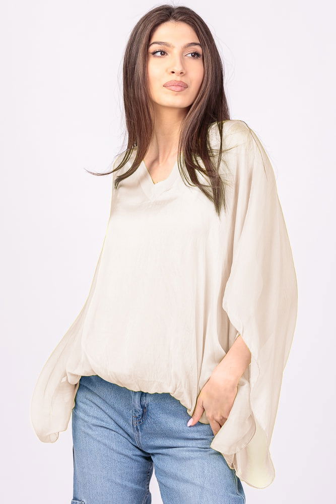 Shopika Bluza din matase si vascoza bej deschis, cu decolteu in V in fata si pe spate