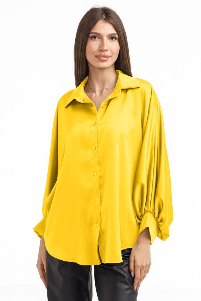 Shopika Camasa eleganta din satin, cu maneci bufante, galbena