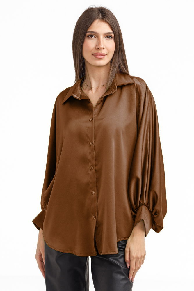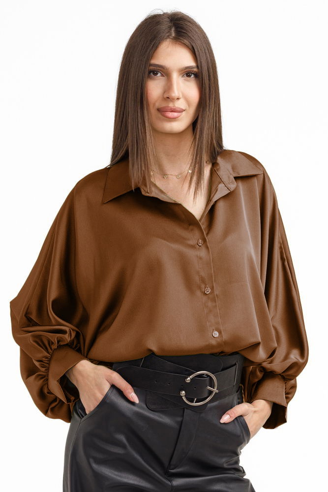 Camasa dama din satin este alegerea perfectă pentru un look elegant și modern. Materialul lucios oferă un aspect rafinat, iar croiul lejer cu mâneci bufante și manșete late adaugă un aer sofisticat.