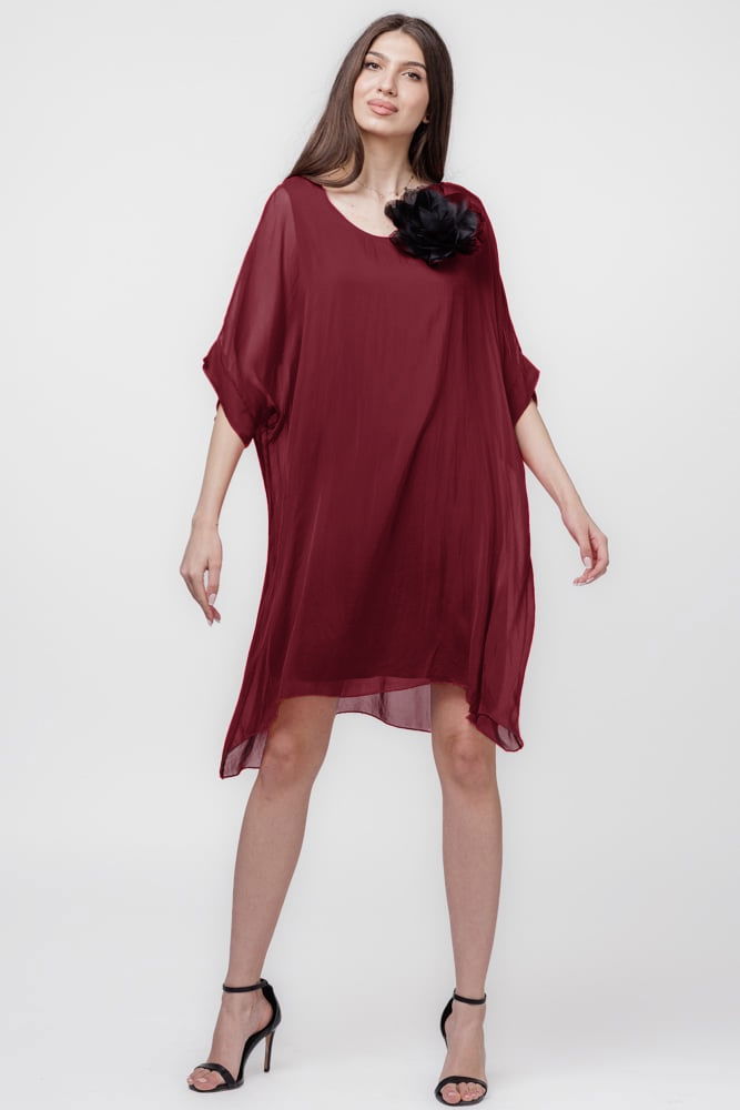 Shopika Rochie midi, dreapta, din matase si vascoza, cu funda pe spate, bordo