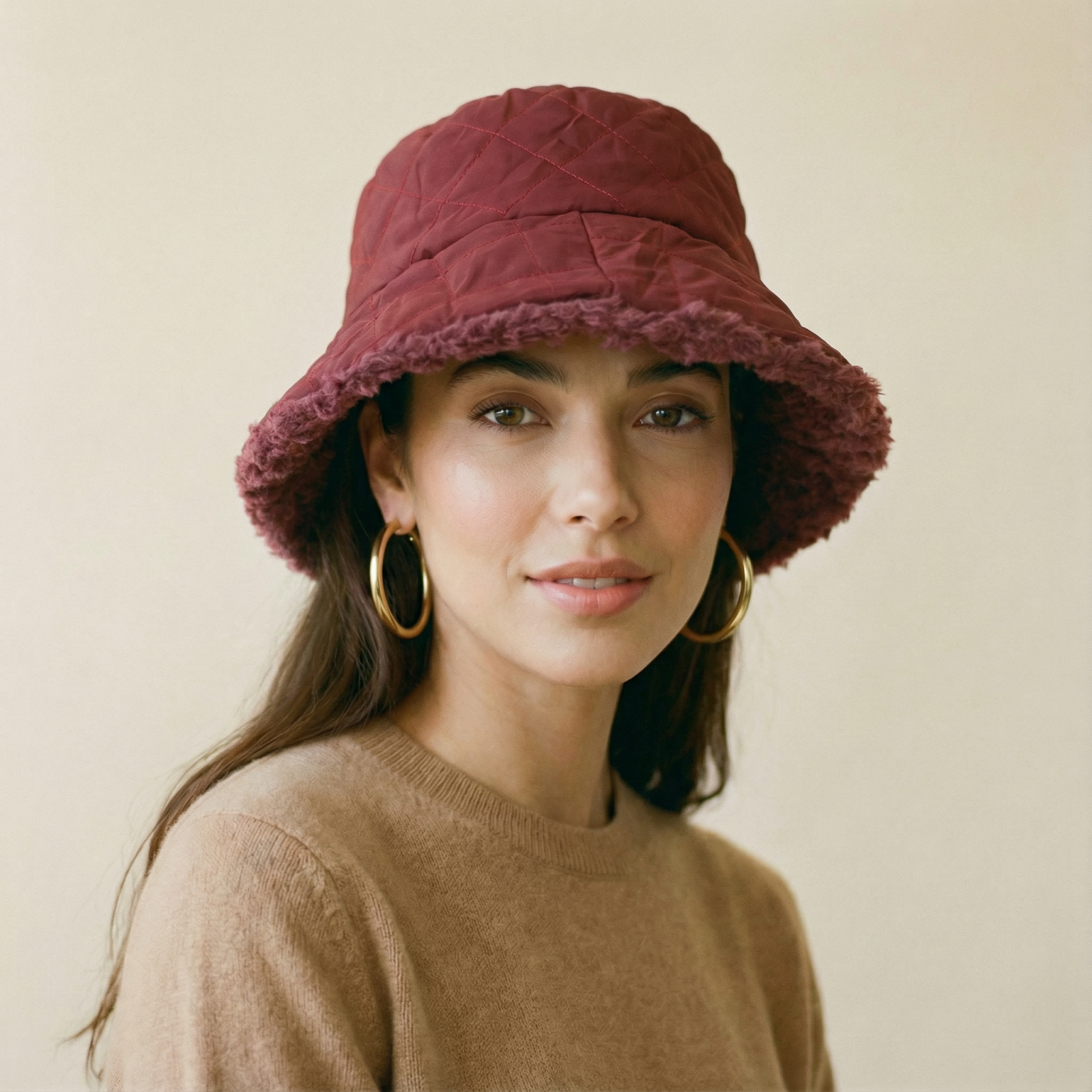 Shopika Palarie clos reversibila cu o fata blanita si o fata aspect matlasat, bordo